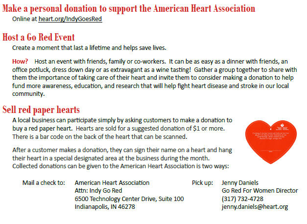 Raise awareness and fund the fight against heart disease and stroke by hosting your own Wear Red Day activity! And if possible, stay red throughout the month of February for American Heart Month.  Click here to let us know how you and/or your company plan to Go Red in February!
